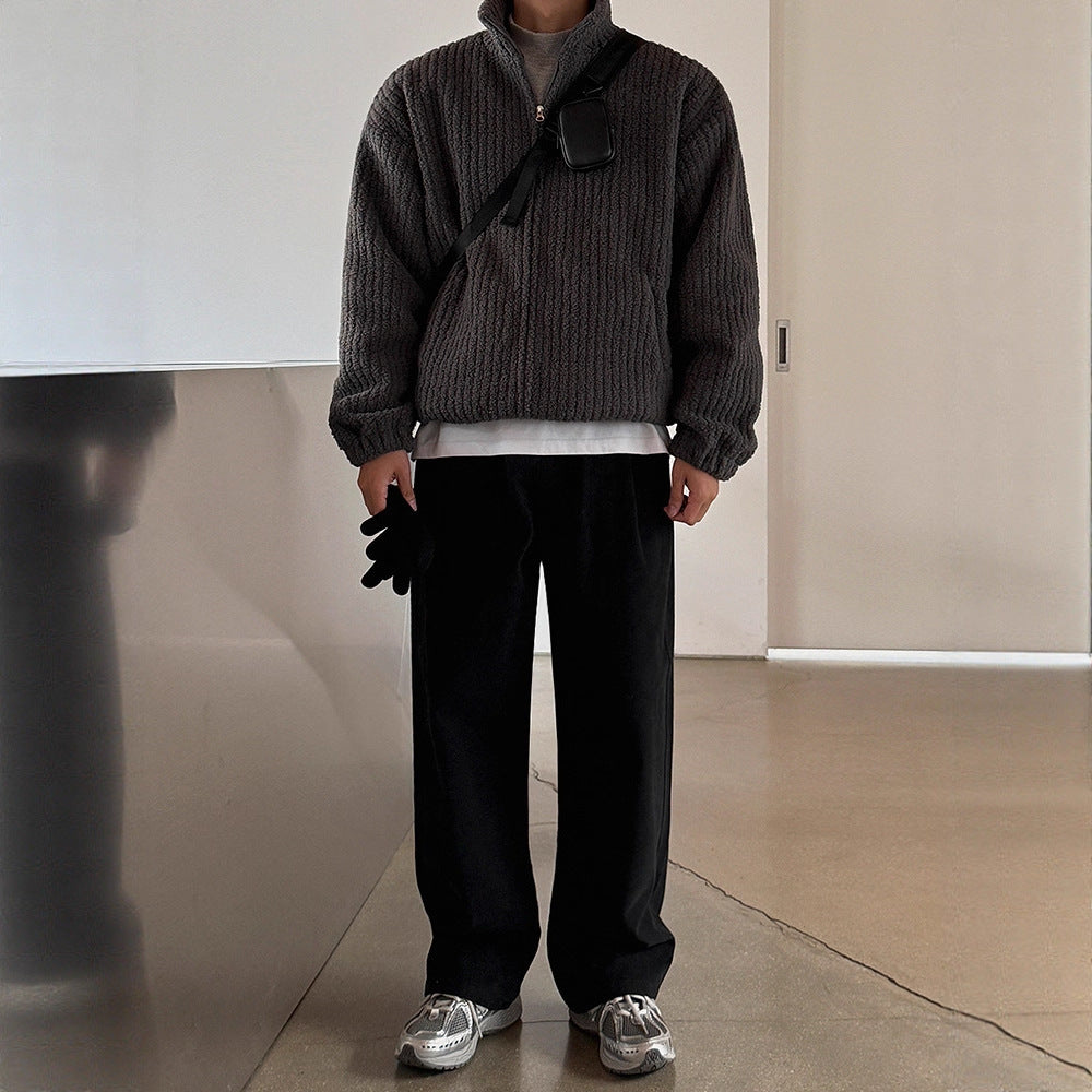 Coat & Fashionable Sheepskin-like Fleece Stand-up Collar Loose Fit Warm Winter Outerwear, Unisex Coat