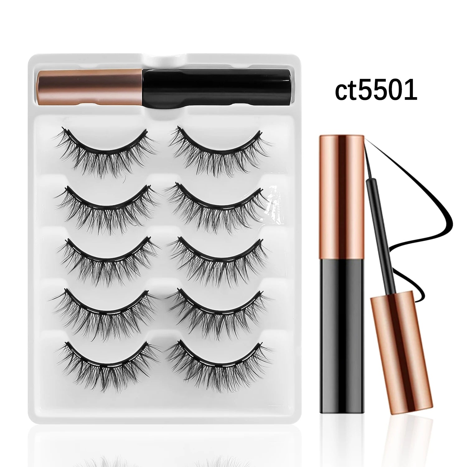 REDSIREN 5Pairs Magnetic Eyelashes With Eyeliner Reusable Thick Natural Eye Lashes New 5Piece Magnet False Eyelashes